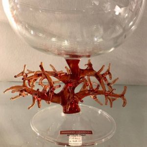 Prodotta con la tecnica artigianale della soffiatura a lume.Ha il gambo fatto da un ramo di corallo di vetro rosso che sorregge la coppa in vetro trasparente.L’immagine è puramente indicativa.Prodotto artigianale ogni articolo è da ritenere pezzo unico e irripetibile.Dimensioni : ø 18 cm. H 18 cm.