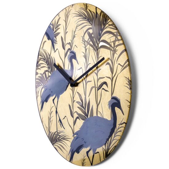 L’orologio è realizzato in vetro temperato e foglia d’oro o d’argento. Movimento al quarzo a batteria di produzione tedesca.